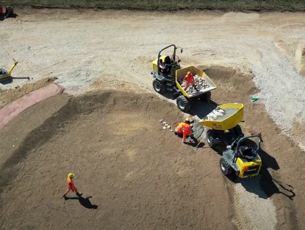 Am Montag, 08. August 2022 reisten die Lernenden gemeinsam aus dem Fricktal an und starteten mit ihren Arbeiten. Im Vorfeld wurde bereits ein Aushub durch eine andere Firma ausgeführt. Die angehenden Fachkräfte verlegten Rohrleitungen, führten kleinere Aushub- und Betonierarbeiten selbständig durch, erstellten eine Steinmauer und richteten den Unterstand auf. Ob Büro- oder Handwerkerjob, alle Teilnehmer*innen packten gleichermassen an und meisterten das Projekt als Team. Der Perspektivenwechsel und die Einblicke in die anderen Tätigkeitsgebiete der Kolleginnen und Kollegen waren dabei besonders wertvoll. Unterstützung erhielten die Lernenden von der Ausbildungsverantwortlichen Maren Eichert, dem Lehrlingsbeauftragten Hoch- und Tiefbau Dieter Kern sowie den Praxisbildnern Vito Salvatore Baldi, Stefan Leutenegger, Michel Senn und Rainer Kloss.