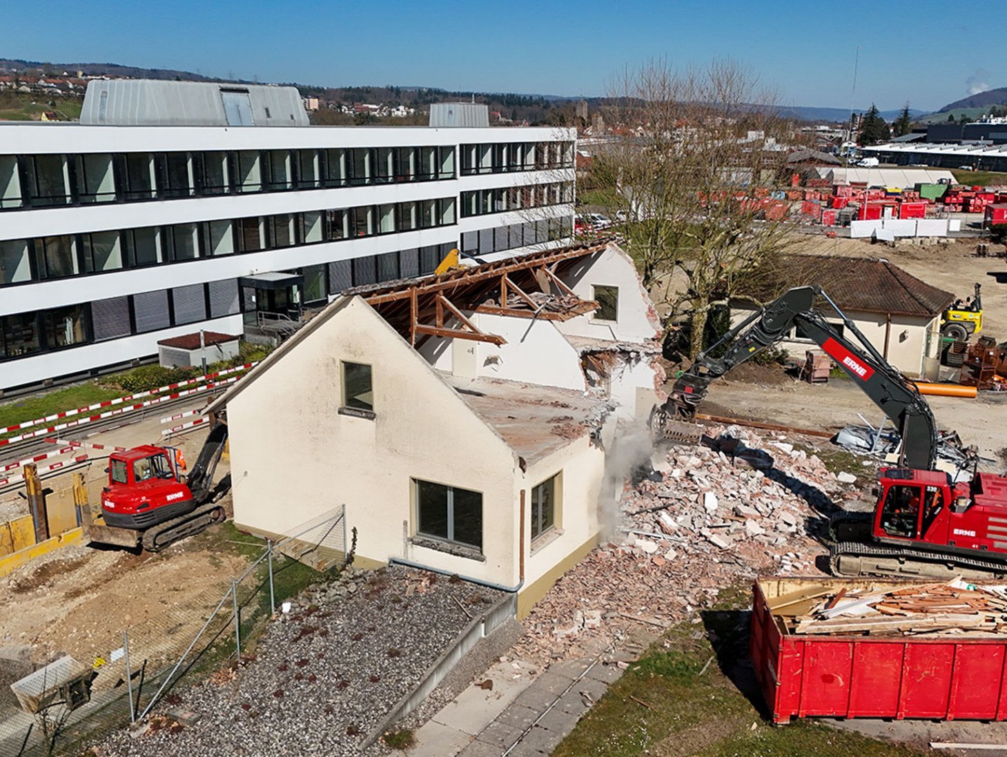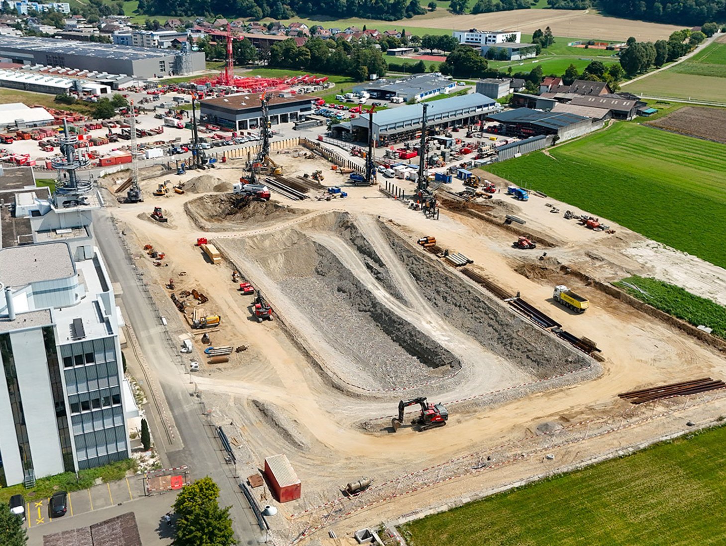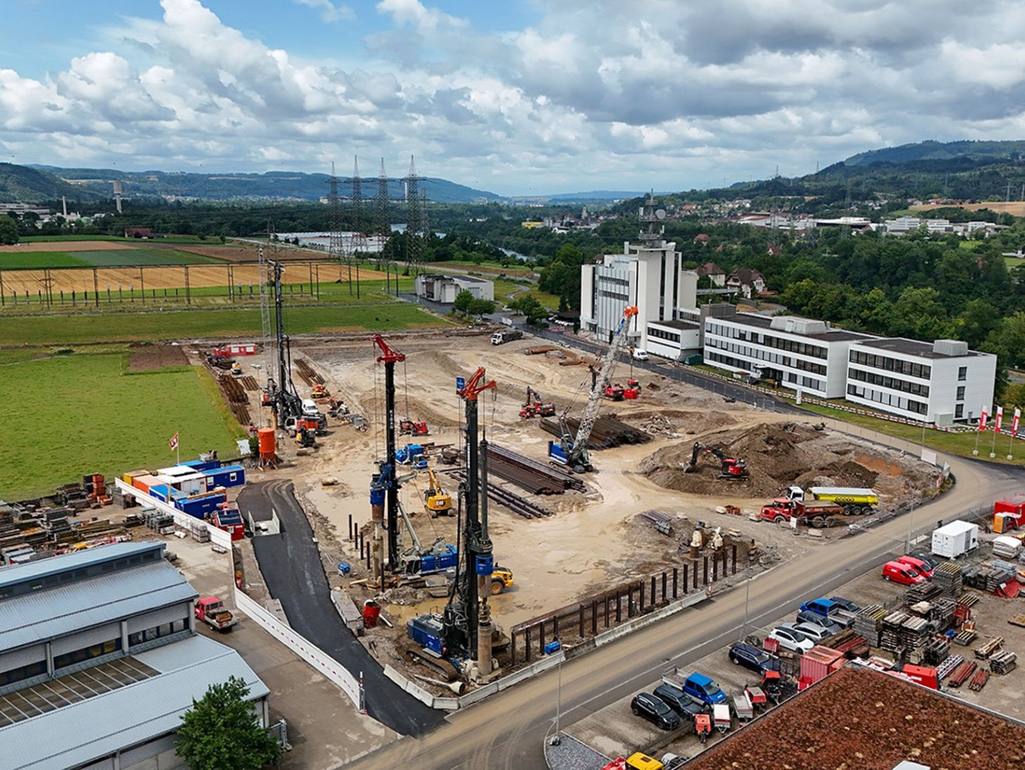 Die Tiefbauarbeiten für das Technologiezentrum Laufenburg (TZL) sind in vollem Gange. Aktuell werden über 600 Bohrpfähle mit Tiefen bis zu 30 Metern und Durchmessern bis 1,2 Metern gesetzt. Sie bilden die bauliche Grundlage für das Aushubvolumen von rund 500'000 m3 Erdreich.
