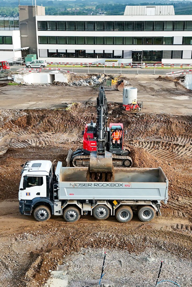 Unter Applaus der geladenen Gäste führte Marcel Aumer, CEO der FlexBase Group, am 5. Mai mit dem ERNE Bagger den symbolischen Spatenstich für das Jahrhundertprojekt durch.