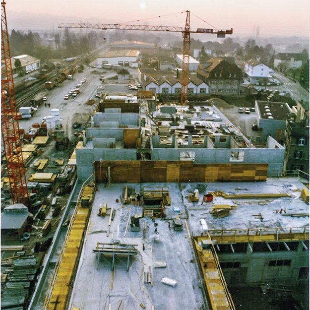 Au début des années 70, le secteur du bâtiment – en particulier la construction industrielle – connaît un essor économique considérable offrant ainsi à ERNE AG Bauunternehmung des carnets de commandes bien remplis. L'entreprise compte désormais 150 collaborateurs et est déjà dirigée par la troisième génération de la famille. Les affaires ne restent pas au beau fixe pendant très longtemps. À peine deux ans plus tard, la crise économique jette une grande ombre sur le secteur du bâtiment. ERNE est forcé de réduire le personnel de moitié. Il a fallu attendre 10 ans pour que le nombre de collaborateurs soit à nouveau doublé et qu'une nouvelle expansion soit possible.