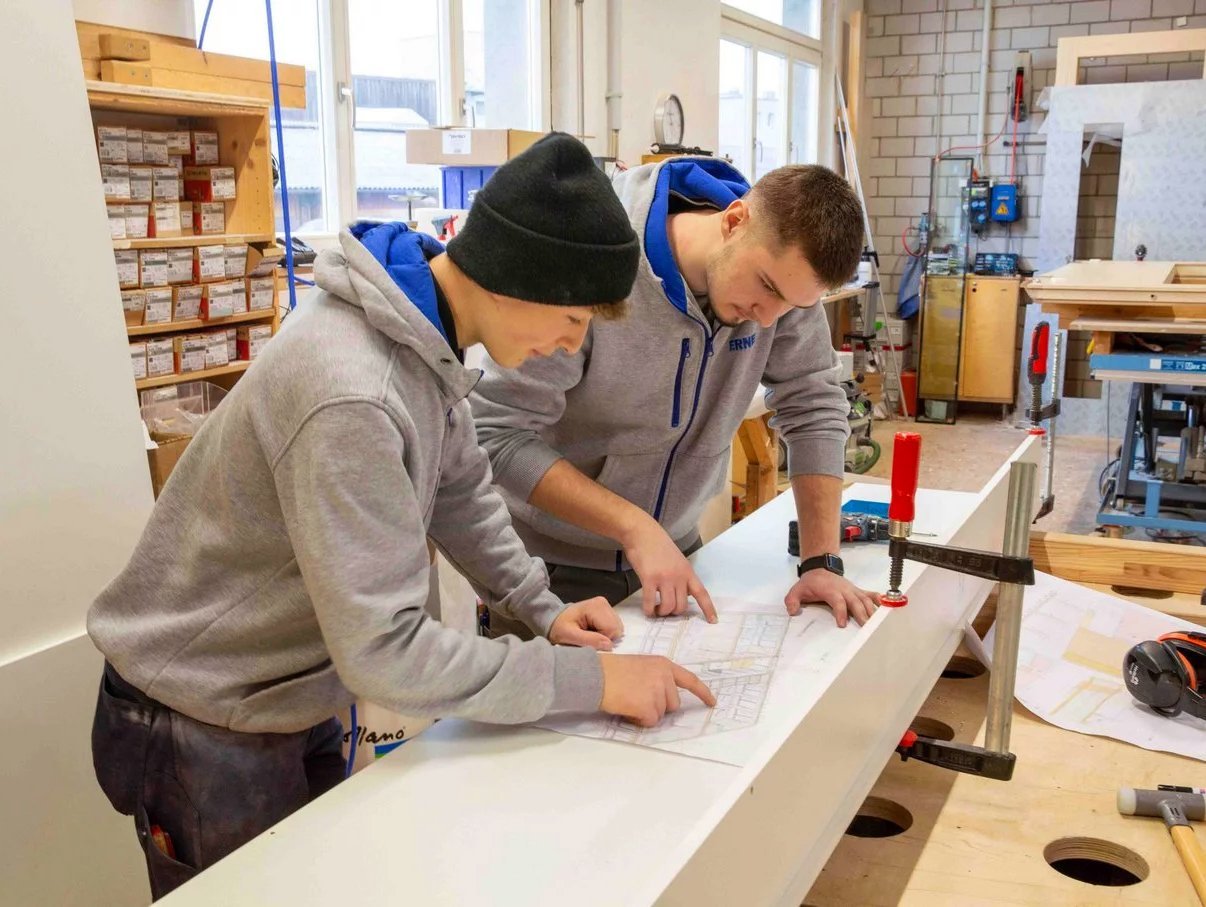 Travailler avec des apprentis menuisiers est un plaisir et une fierté - nous transmettons notre savoir, encourageons la tradition artisanale et l'innovation, et façonnons ensemble un secteur d'avenir. Grâce à des objectifs clairs, un feedback valorisant et un environnement d'apprentissage sûr et structuré, les apprentis développent de véritables compétences, un esprit d'équipe et le sens des responsabilités. C'est ainsi que naissent la fierté d'un travail de qualité, un savoir-faire durable et la confiance en l'avenir du métier de menuisier.