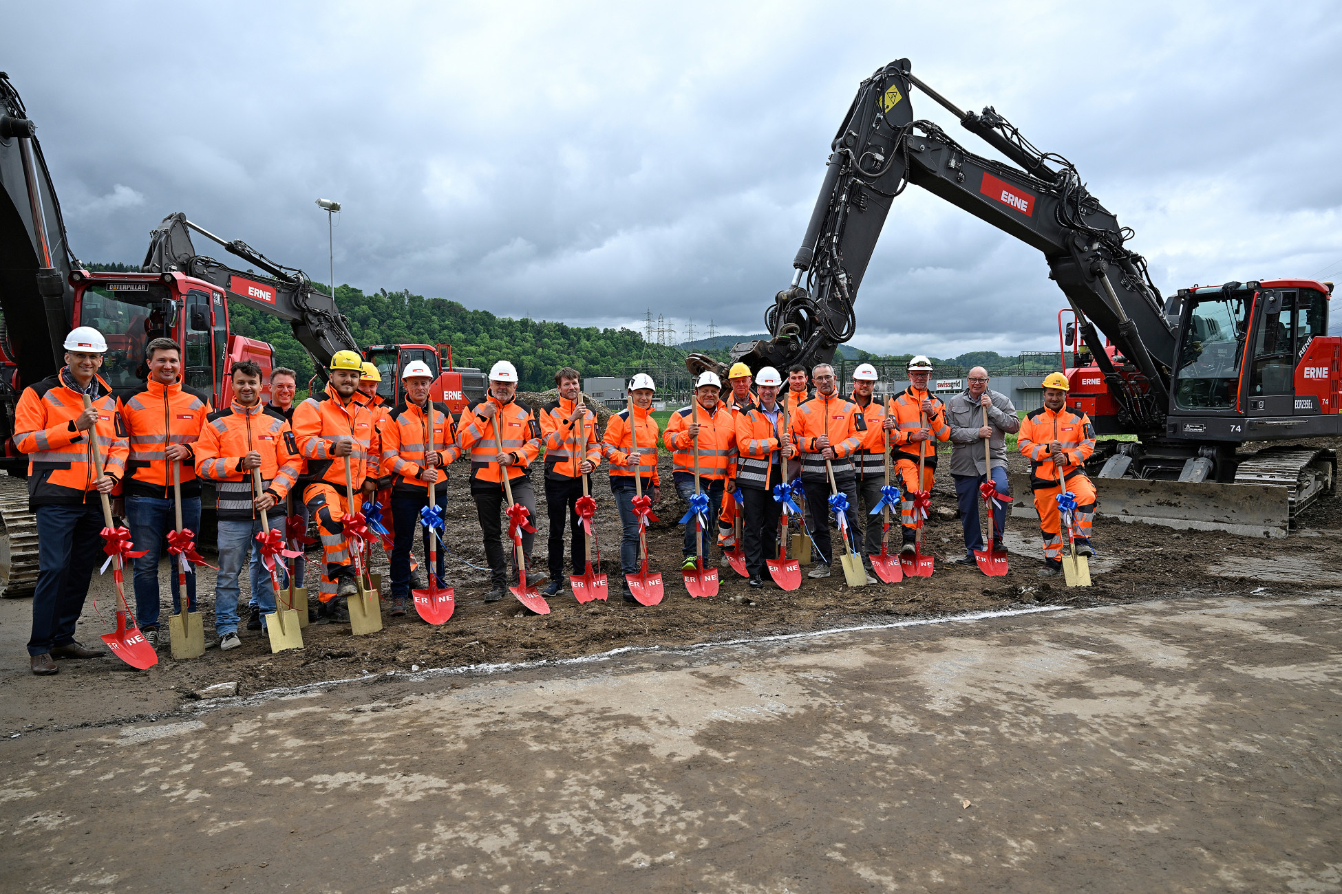 Sous les applaudissements des invités, Marcel Aumer, CEO du groupe FlexBase, a donné le 5 mai le premier coup de pioche symbolique de ce projet du siècle avec la pelle ERNE.